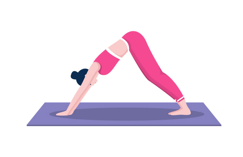 Downward Dog PoseGet on all fours, then tuck your toes under and bring your sitting bones up, so that you make a triangle shape. Keep a slight bend in your knees, while lengthening your spine and tailbone.